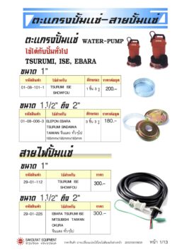 ใบราคา ตะแกรงปั้มแช่ สายไฟปั้มแช่